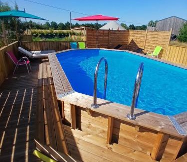 Yourte- Bambou - Climatisée- Les Belles Ouvrières is located in Clermont-Créans, just 22 miles from Le Mans Circuit and 24 miles from Antarès. Providing a seasonal outdoor swimming pool, the property is located within 19 miles of Solesmes Abbey. There's a sun terrace and guests have access to free Wifi, free private parking, and an electric vehicle charging station. This air-conditioned luxury tent comes with a seating area, a fully equipped kitchen with a microwave, and a flat-screen TV. Towels and bed linen are featured in the luxury tent. The property has an outdoor dining area. A full English/Irish breakfast is available at the luxury tent. Guests at Yourte- Bambou - Climatisée- Les Belles Ouvrières will be able to enjoy activities in and around Clermont-Créans, like cycling, fishing, and canoeing. Bauge Golf Course is 16 miles from the accommodation, while Sable-Solesmes Golf Club is 21 miles away.
