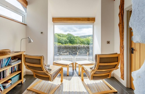 Get away in style at this stylish cottage in beautiful Mid Wales countryside. Complete with a games room, a welcoming woodburner and unique features throughout, Ysgubor Tanllan provides a blissfully quiet setting with breathtaking views and plenty to do nearby.