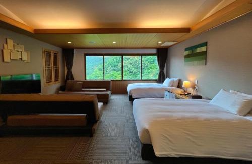BathroomToilet paper, Shampoo, Body soap, Shower cap, Slippers, Bidet, Conditioner, Toothbrush, Hairdryer, Bathrobe, Toilet, Private bathroom, Free toiletries, Bathtub or shower, Towels, Shower, BathtubGeneralAir conditioning, Key access, Heating, Trash cans, SafeMedia & TechnologyTelephone, TV, Flat-screen TVKitchenRefrigerator, Electric kettleLiving AreaDesk, SofaViewRiver view, Mountain view, ViewServicesWake-up serviceAccessibilityAccessible by elevator, Upper floors accessible by elevatorRoom AmenitiesSofa bed, Feather pillow, Socket near the bed, Yukata, Drying rack for clothing, Clothes rackHot SpringOpen-air bath |
