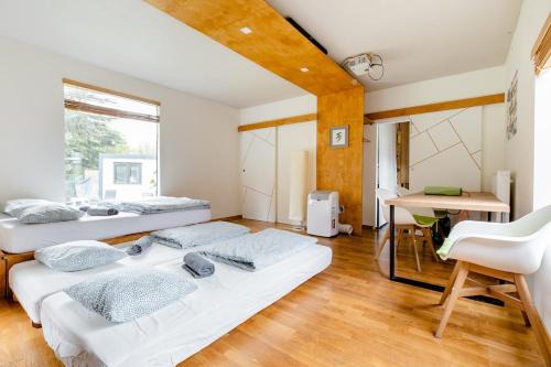 Providing a garden, YUZU FULL-House provides accommodations in Petržalka. Guests can go for a swim in the private pool. There's an outdoor fireplace and guests have access to free Wifi, free private parking, and an electric vehicle charging station. Leading onto a patio with garden views, the spacious air-conditioned apartment consists of 4 bedrooms. Offering a terrace with pool views, this apartment also has a satellite flat-screen TV, a well-equipped kitchen with a dishwasher, a microwave, and a fridge, as well as 2 bathrooms with a bidet and slippers. For added privacy, the accommodation has a private entrance and is protected by full-day security. Guests may eat at the on-site family-friendly restaurant, which is open for dinner, lunch, and cocktails. Guests can take advantage of yoga classes held on site. For guests with children, the apartment offers an indoor play area, outdoor play equipment, and a baby safety gate. A bicycle rental service is available at YUZU FULL-House, while cycling and hiking can be enjoyed nearby. Incheba is 2 miles from the accommodation, while UFO Observation Deck is a 16-minute walk away. Bratislava Airport is 6.8 miles from the property.