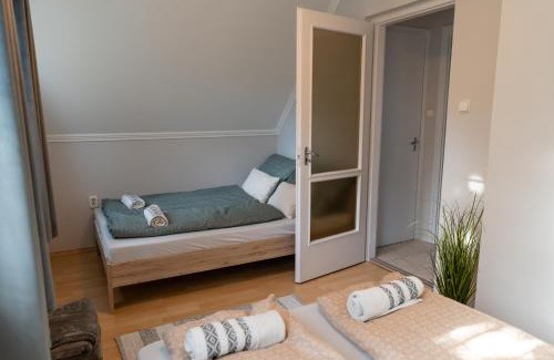 This property offers access to a terrace and free private parking. With free Wifi, this 2-bedroom vacation home provides a cable flat-screen TV, a washing machine, and a fully equipped kitchen with a dishwasher and oven. Towels and bed linen are featured in the vacation home. The property has an outdoor dining area. Guests at Zöld vendégház can enjoy cycling and fishing nearby, or make the most of the garden. Debrecen International Airport is 79 miles away.
