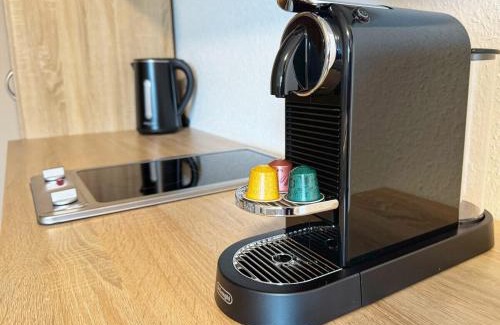 Zentrale Penthouse Suiten mit Goldstadtblick offers accommodations in Pforzheim, a 10-minute walk from Congress Centre Pforzheim and 0.9 miles from Jewelry Museum. The property is around 4.4 miles from Alpengarten Pforzheim, 18 miles from Karlsruhe Train Station, and 18 miles from State Theater of Baden. Free Wifi is available throughout the property, and Pforzheim Central Station is a 5-minute walk away. The apartment complex will provide guests with air-conditioned units offering a outdoor furniture, a coffee machine, a microwave, a fridge, a safety deposit box, a flat-screen TV, a patio, and a private bathroom with a shower. At the apartment complex, every unit is equipped with bed linen and towels. If you'd prefer to cook in the comfort of your own space, you can make use of the kitchen facilities, which include a stovetop, kettle, and kitchenware. Popular points of interest near the apartment include Pforzheim Market Place, Theatre Pforzheim, and Culture House Osterfeld. Stuttgart Airport is 30 miles from the property.