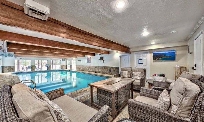 This house offers amenities from head to toe including the 42 ft. large Indoor heated pool. Perfect for large group, family, or business retreat. The location is amazing! We are located in a community called Round Hill, close to beaches & only 5 minutes to Casinos and Heavenly!